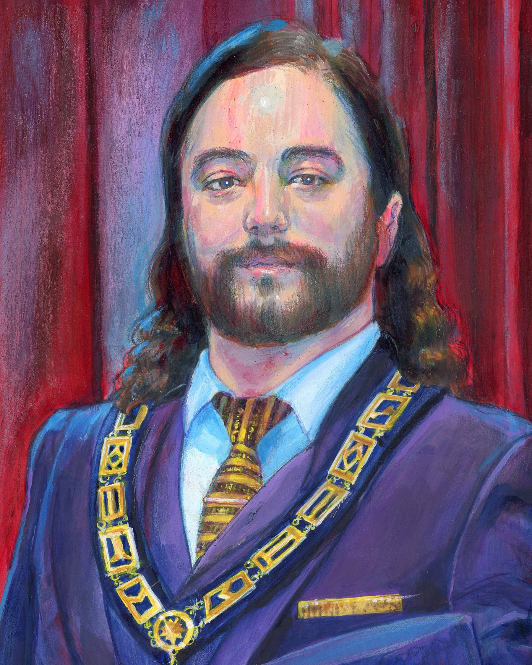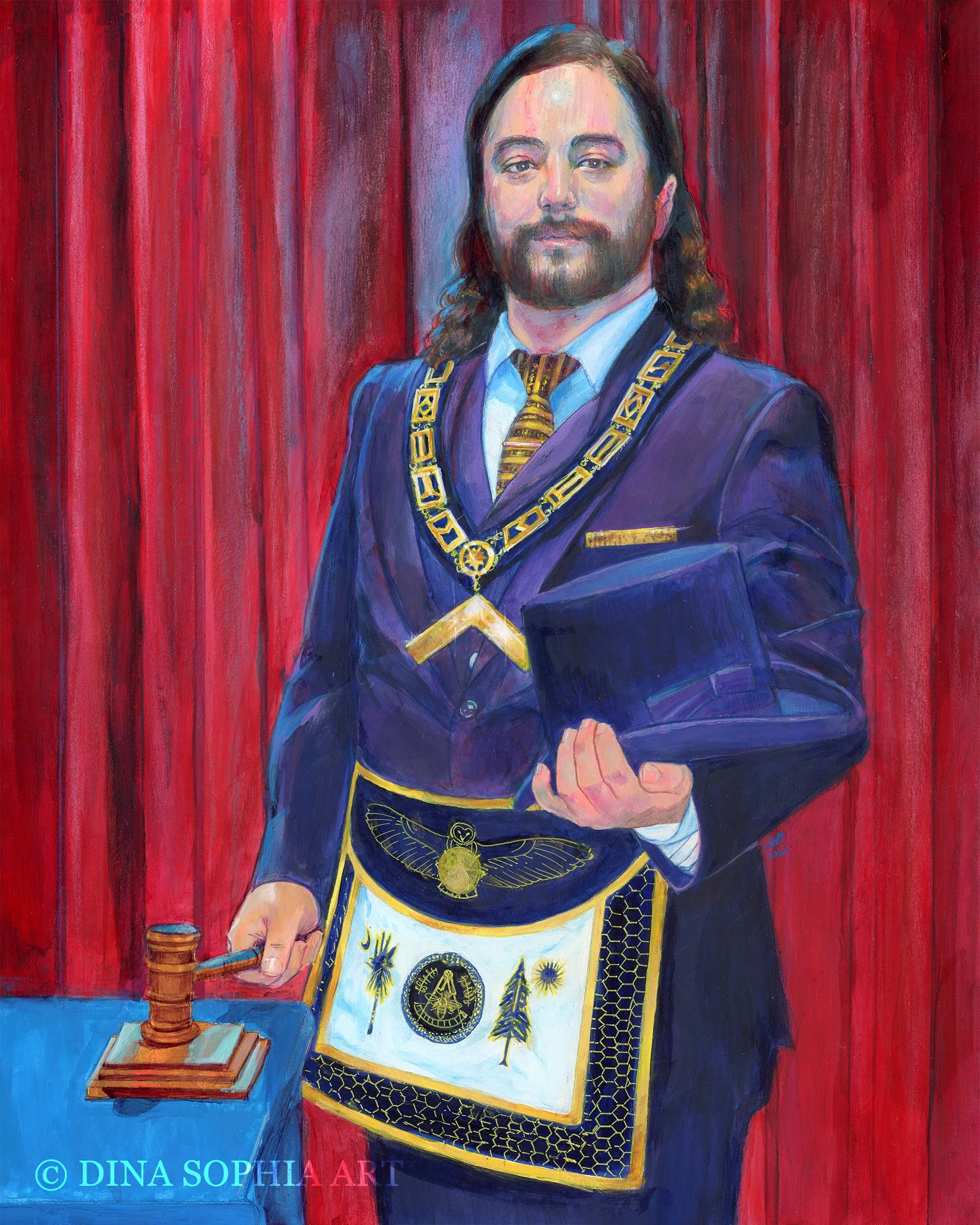 A Los Angeles Freemason commissioned me to paint his inductee portrait. Acrylic. 11” x 17”.